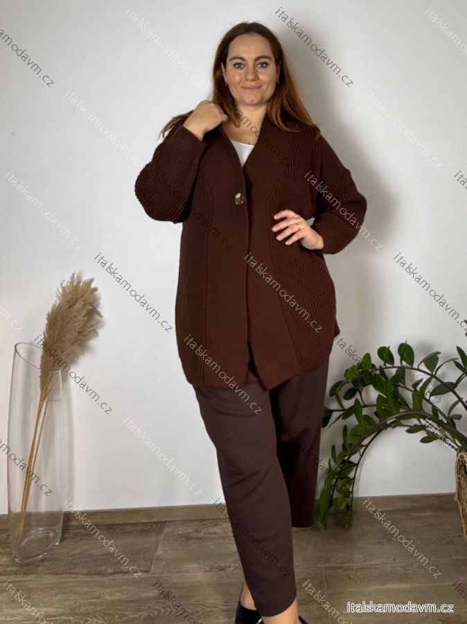 ZBOŽÍ (21863) > Svetr cardigan pletený na knoflík dámský nadrozměr Ester (50/52/54 ONE SIZE) ITALSKÁ MÓDA IMD25162/DUR 50/52/54 vínová