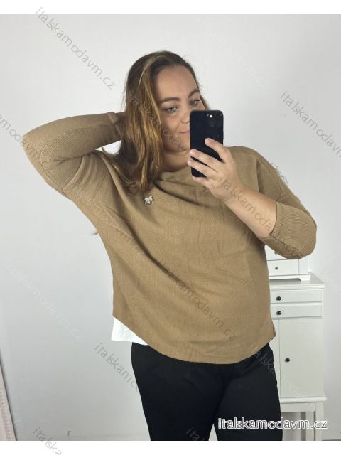 ZBOŽÍ (23710) > Oblečení dámské (18882) > Svetry a cardigany (910) > Svetr tenký (338) > Svetr oversize dlouhý rukáv dámský nadrozměr (2XL/3XL ONE SIZE) POLSKÁ MÓDA PMWM23510/DR 2XL/3XL béžová