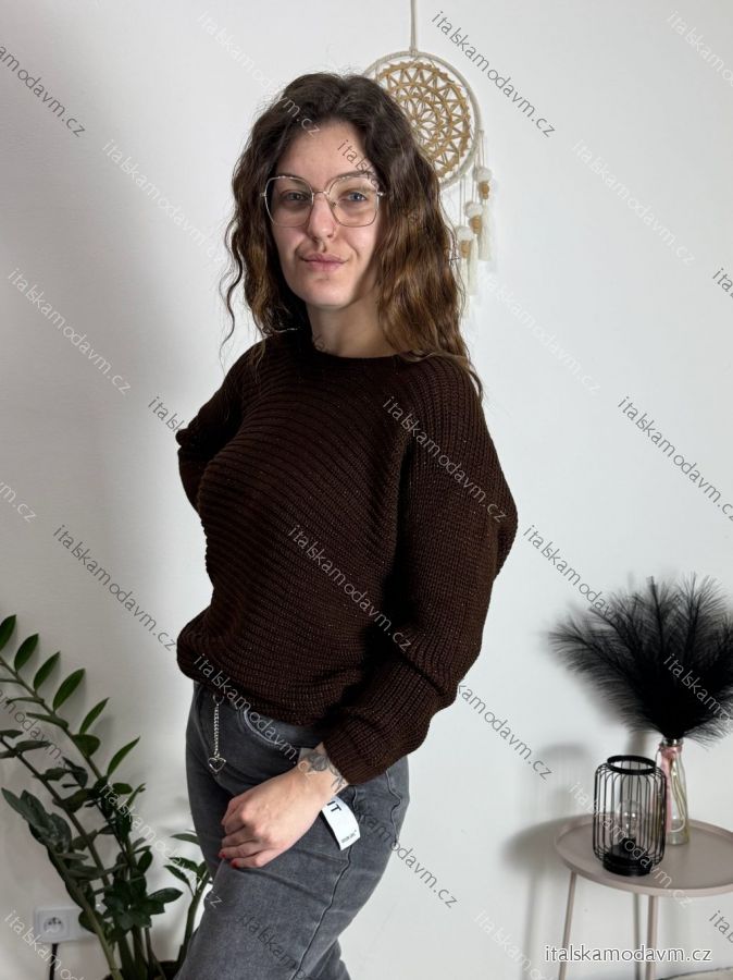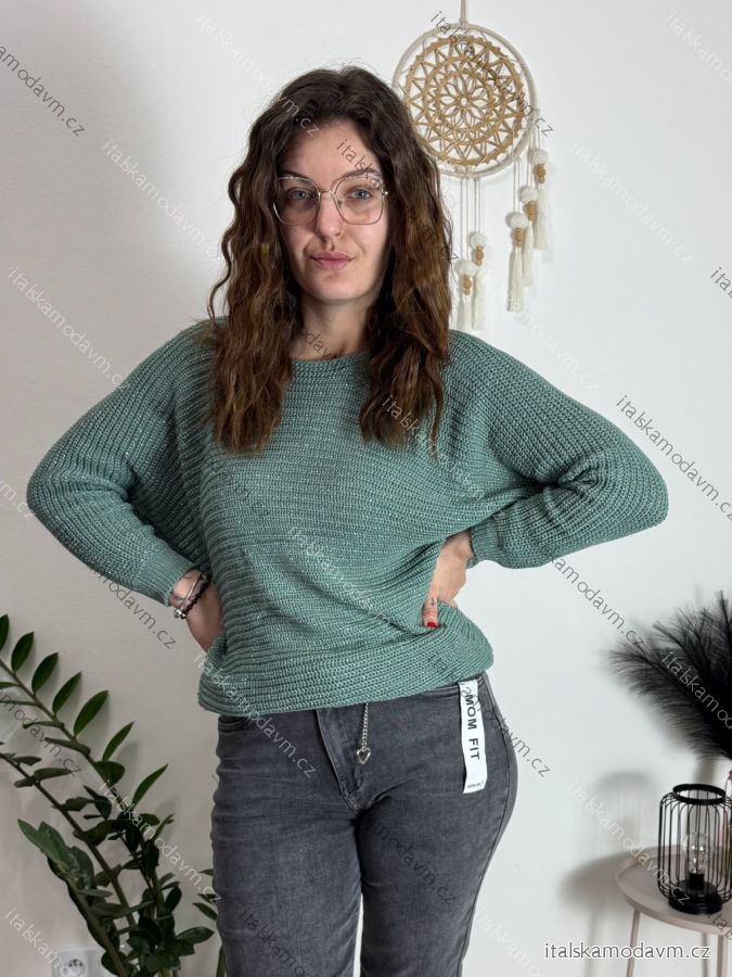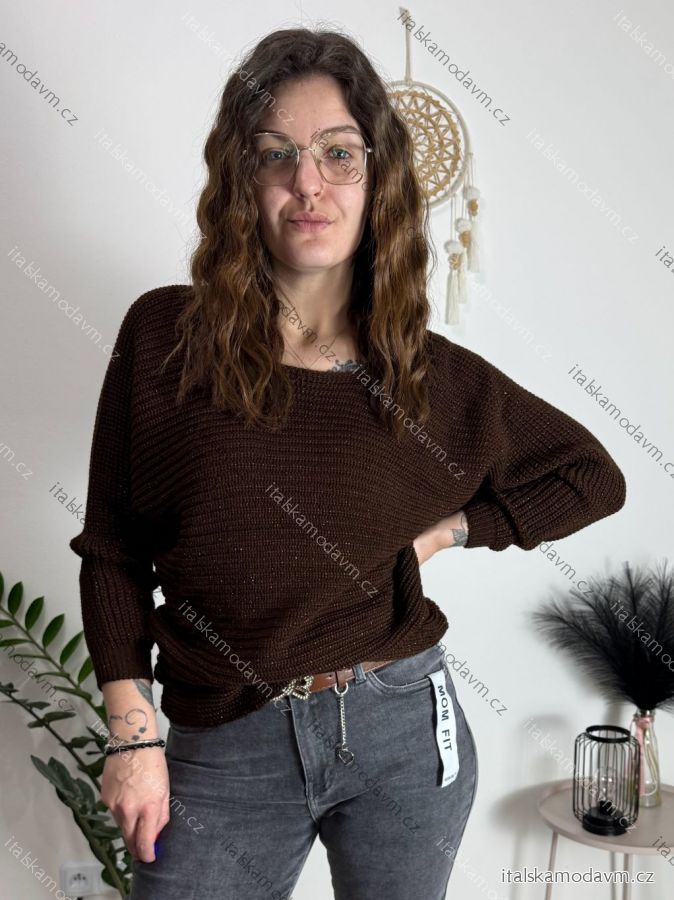 Svetr pletený dlouhý rukáv netopýří dámský, proplétaný lesklou nití