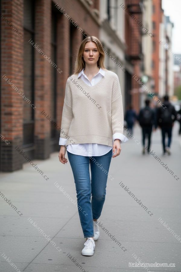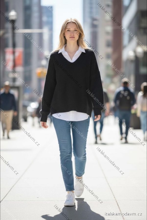 Svetr pletený dlouhý rukáv dámský nadrozměr (50/52/54 ONE SIZE) ITALSKÁ MÓDA IMD25252