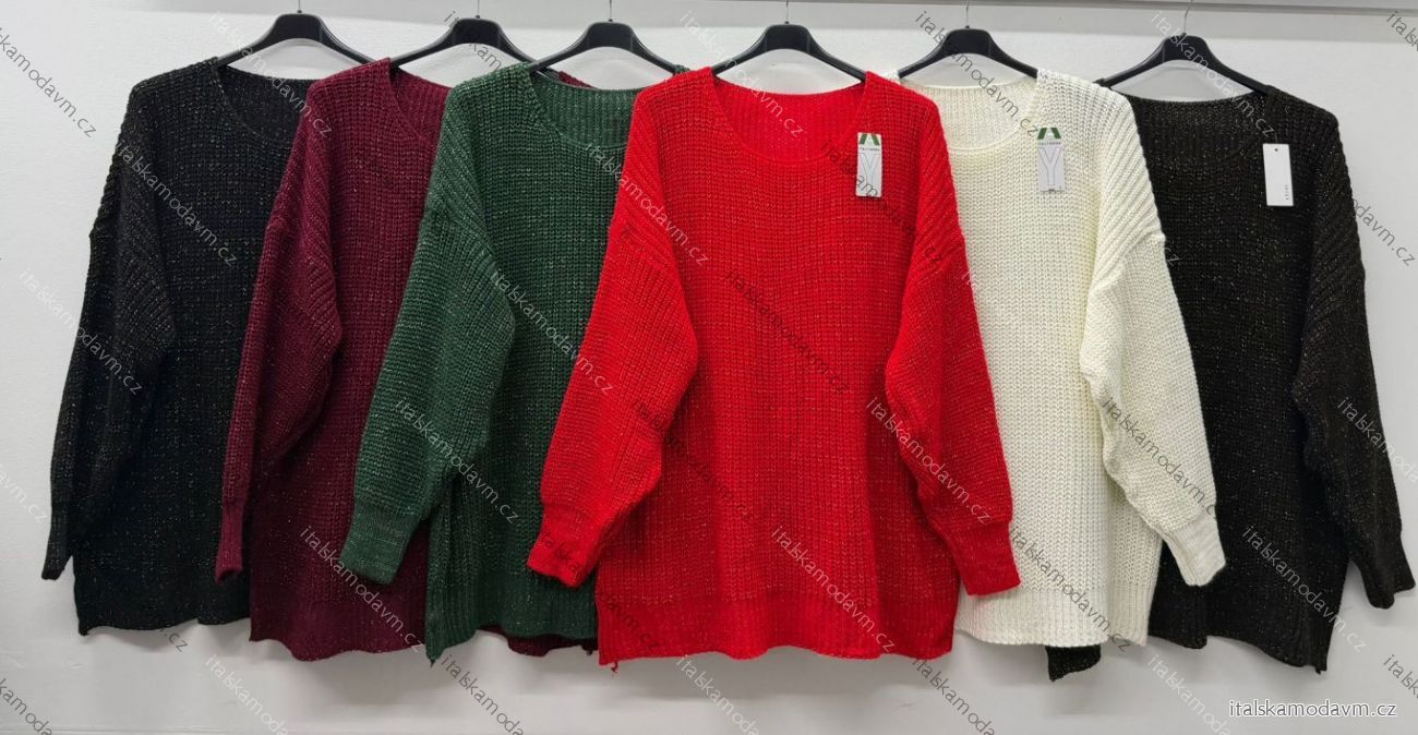 Svetr pletený dlouhý rukáv dámský nadrozměr KEYSY (54/56/58 ONE SIZE) ITALSKÁ MÓDA IM425801