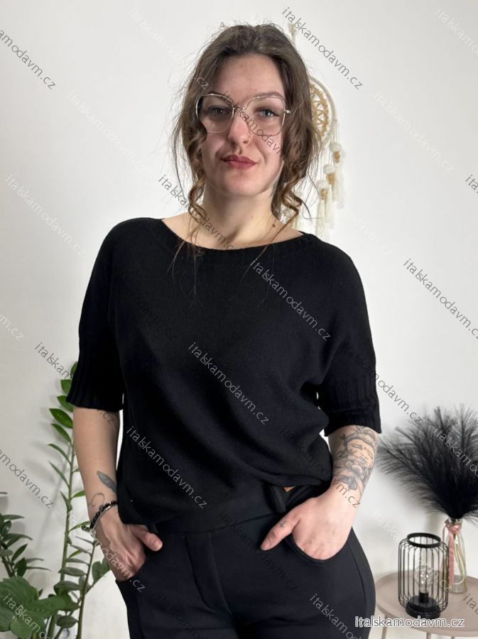 Svetr slabý krátký rukáv dámský (S/M/L ONE SIZE) ITALSKÁ MÓDA IMSM25103/DU světle hnědá S/M/L