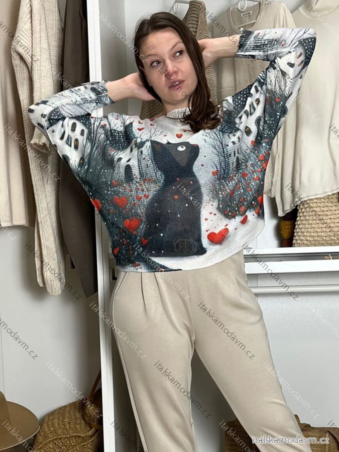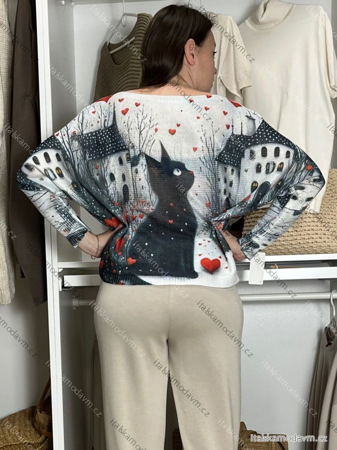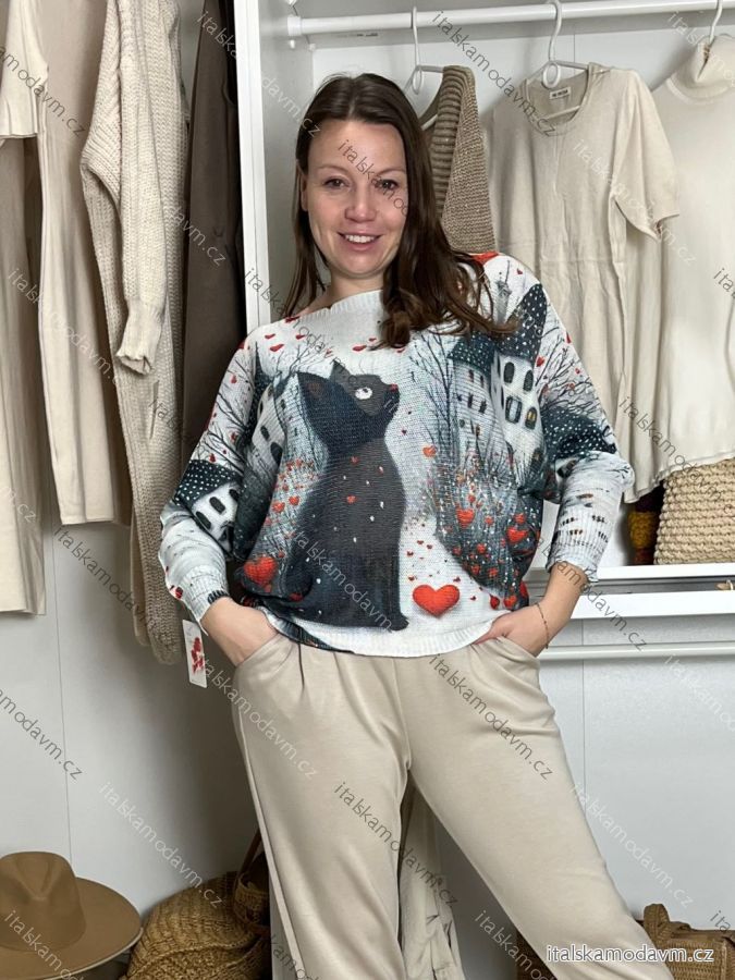 ZBOŽÍ (22753) > Svetr tenký dlouhý rukáv dámský CAT (M/L/XLONE SIZE) ITALSKÁ MÓDA IMSM251137/DU M/L/XL bílá