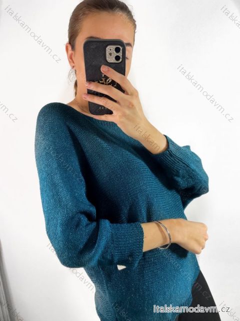 Svetr tenký oversize s mašlí dlouhý rukáv dámský (M/L ONE SIZE) ITALSKÁ MÓDA IM422910/DR petrolejová M/L