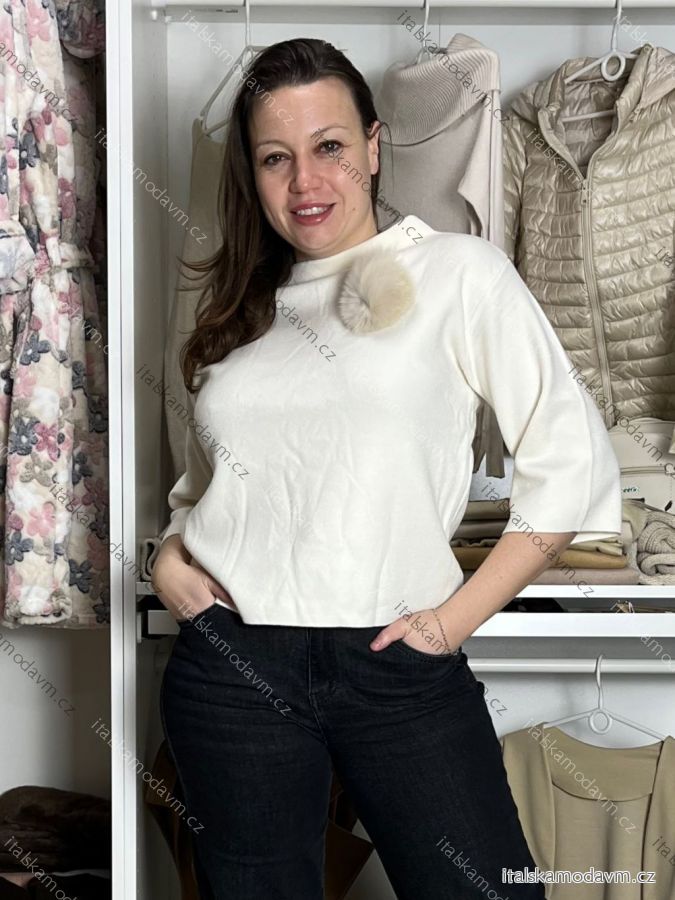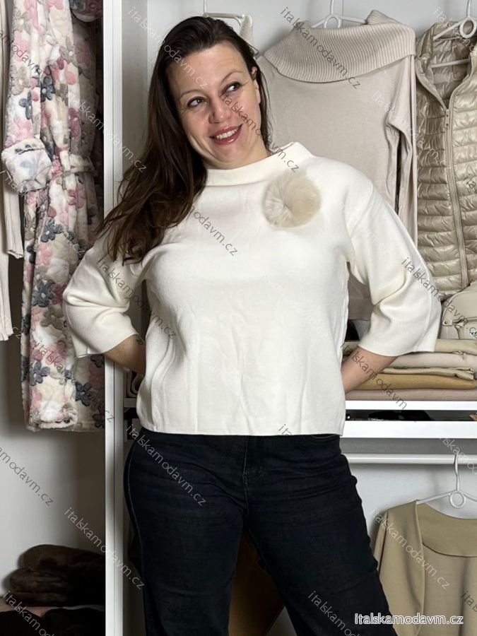Svetr úpletový 3/4 dlouhý rukáv dámský (S/M/L ONE SIZE) ITALSKÁ MÓDA IMM24M5986-1/DU - hnědá - S/M/L
