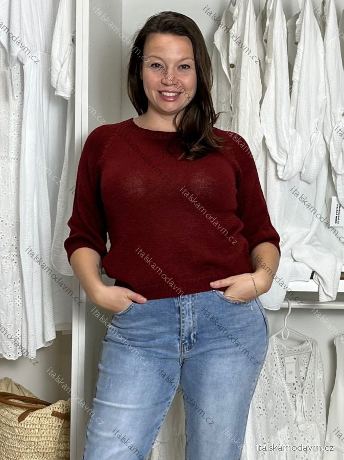 Svetr úpletový 3/4 dlouhý rukáv dámské (S/M/L ONE SIZE) ITALSKÁ MÓDA IM5252422