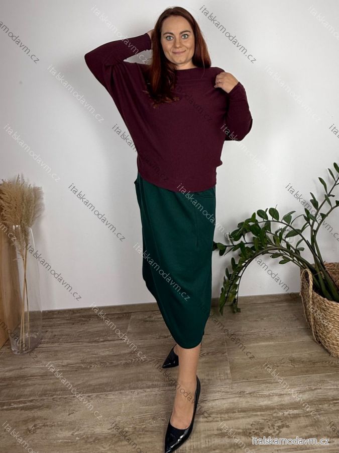 Svetr úpletový dlouhý rukáv dámský nadrozměr (52/54/56 ONE SIZE) ITALSKÁ MÓDA IM4251135/DUR 52/54/56 modrá petrolejová