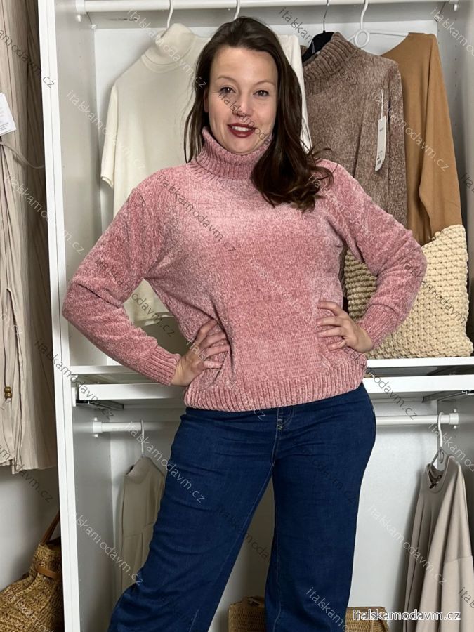 ZBOŽÍ (23054) > Svetr ženilkový s rolákem dlouhý rukáv dámský LENA (M/L-XL/2XL ONE SIZE) ITALSKÁ MÓDA MUS25S004/DR M/L růžová
