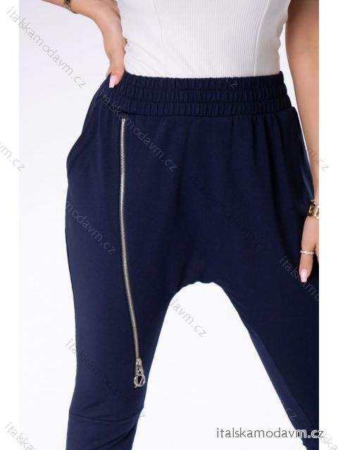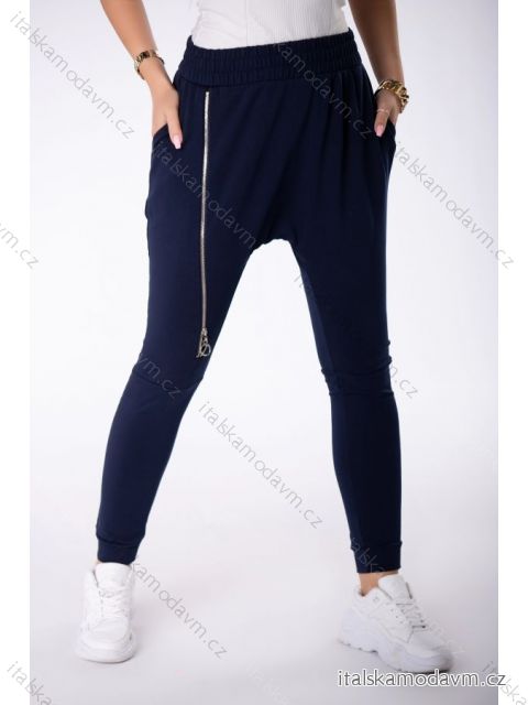 Tepláky vyrobené z kvalitnej bavlny s prímesou elastanu. Spadnuté rozkroky a vrecká v oblasti bokov. Asymetricky všitý zips vpredu mu dodáva zaujímavý vzhľad. Zúžené nohy, ozdobené prúžkom od kolien. Model, ktorý sa bude používať v každodenných štylizáciách so športovou farbou.