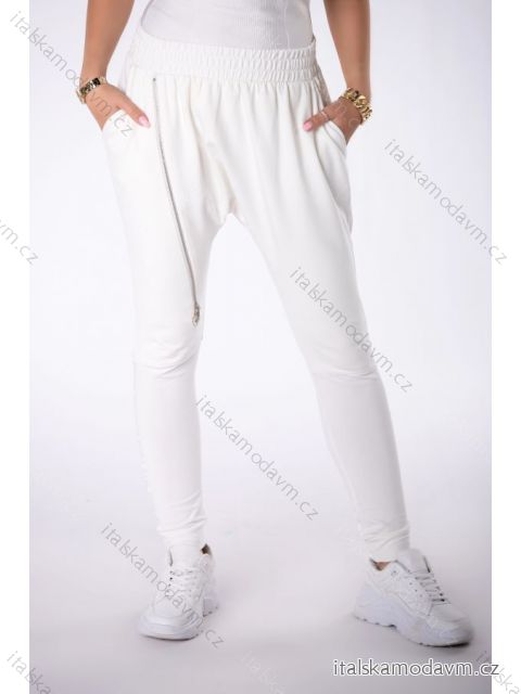Tepláky z kvalitní bavlny s příměsí elastanu. Spadnuté rozkrokové a stahovací kapsy u linie boků. Zajímavý vzhled mu dodává asymetricky všitý zip na přední straně. Zúžené nohy, zdobené pruhem od kolen. Model, který bude použit v každodenních stylizacích se sportovní barvou.