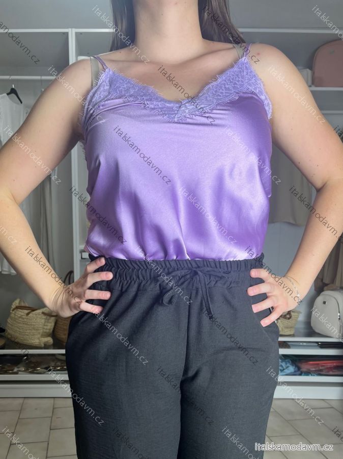 Tílko letní saténové s krajkou dámské (S/M ONE SIZE) ITALSKÁ MÓDA IMM23HG3352 S/M fialová