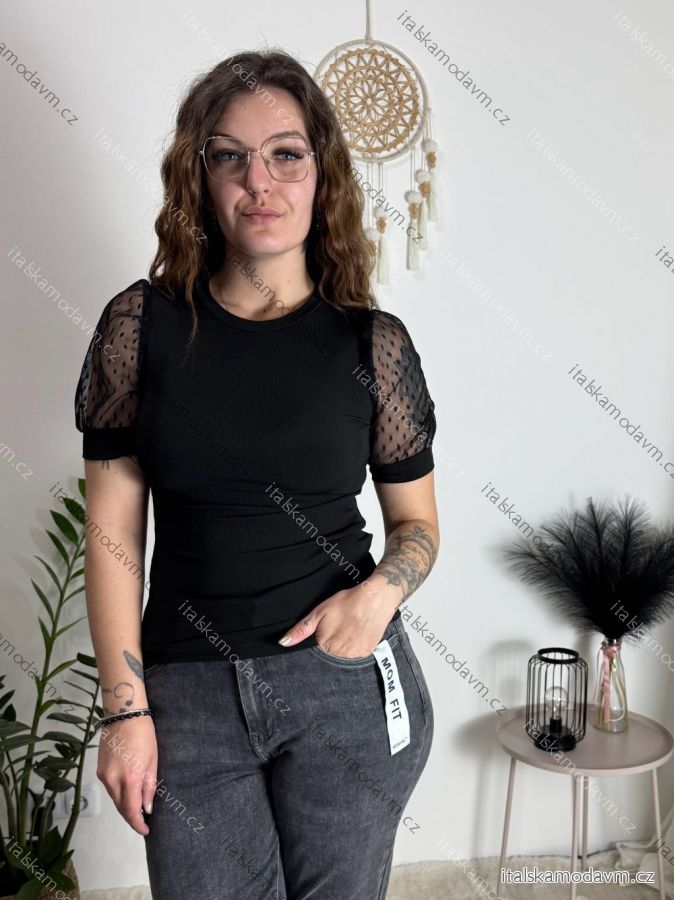 Tričko elegantní krátky rukáv dámské (S/M ONE SIZE) ITALSKÁ MÓDA IMM24M16835/DU - Černá - S/M