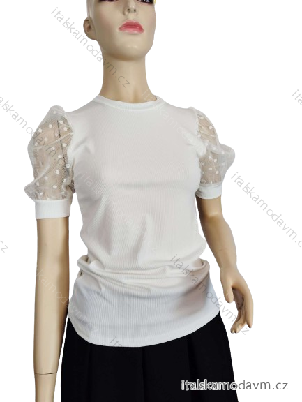 Tričko elegantní krátky rukáv dámské (S/M ONE SIZE) ITALSKÁ MÓDA IMM24M16835/DU Béžová S/M/L