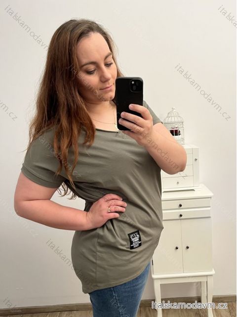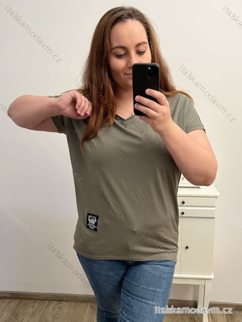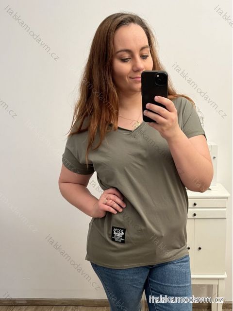 Tričko krátký rukáv dámská nadrozměr (2XL/3XL/4XL ONE SIZE) ITALSKÁ MÓDA IMC23080/DU 2XL/3XL Khaki