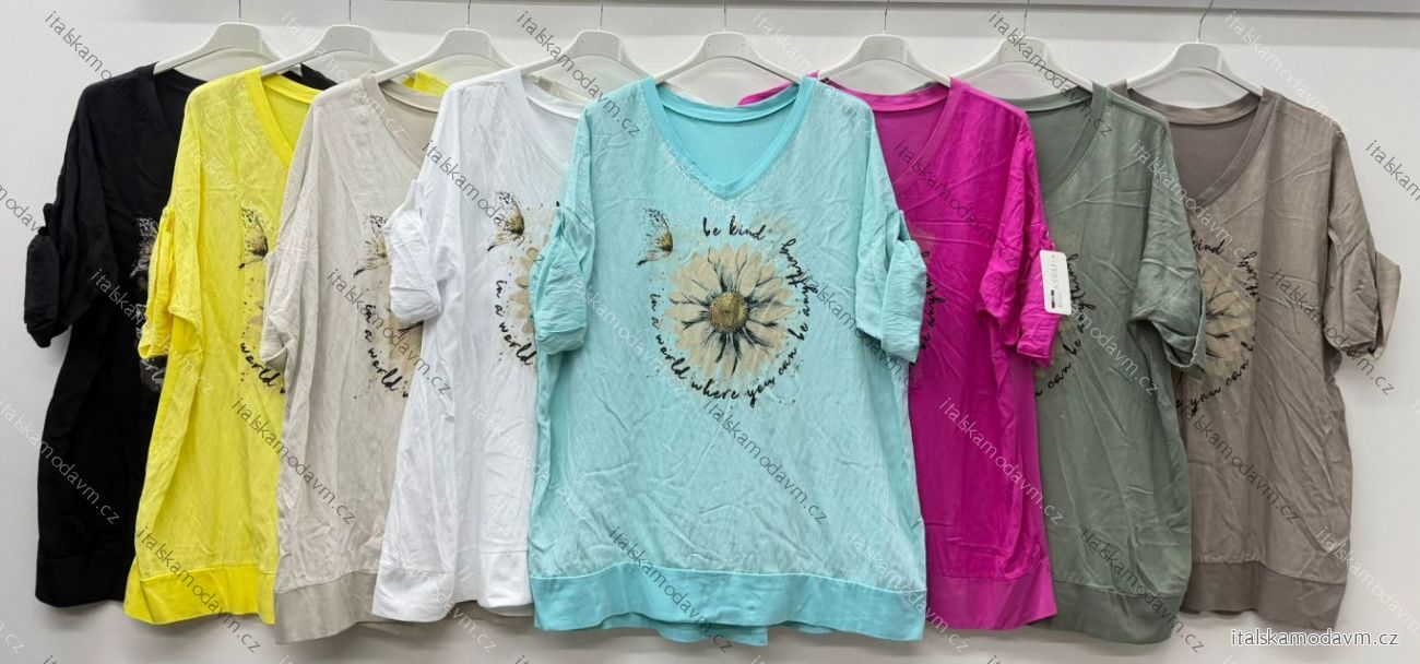 Tričko krátký rukáv dámské nadrozměr (50/52/54 ONE SIZE) ITALSKÁ MÓDA IM426016