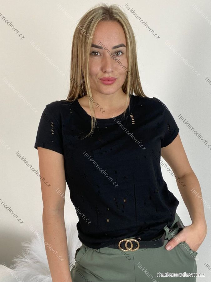 Tričko krátký rukáv dirkované dámské (S/M/L ONE SIZE) ITALSKá MóDA IM521020/DR S/M/L Černá