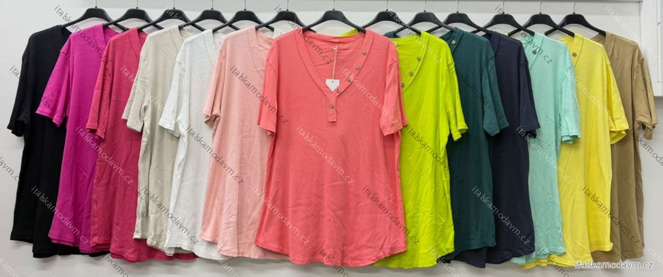 Tričko letní krátký rukáv dámské nadrozměr (54/56/58 ONE SIZE) ITALSKÁ MÓDA IM426006