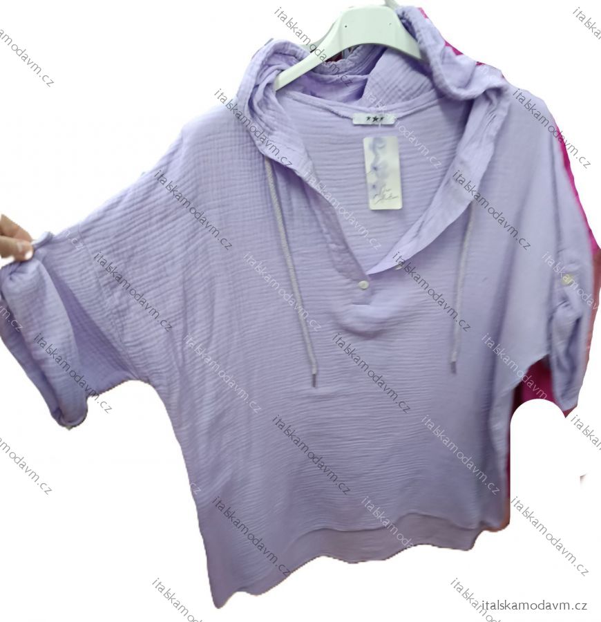 Tričko s kapucí mušelín 3/4 dlouhý rukáv dámské nadrozměr (42/44/46 ONE SIZE) ITALSKÁ MÓDA IMSM25072