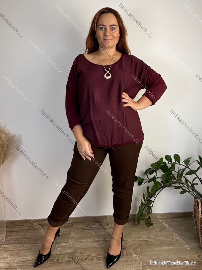 Tričko s přívěskem dlouhý rukáv dámské nadrozměr JULIA (52/54/56 ONE SIZE) ITALSKÁ MÓDA IM425611/DUR 52/54/56 vínová