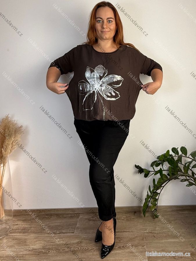 ZBOŽÍ (22578) > Tričko stahovací dlouhý rukáv dámské nadrozměr HANNA (48/50/52 ONE SIZE) ITALSKÁ MÓDA IM425665/DUR 48/50/52 vínová