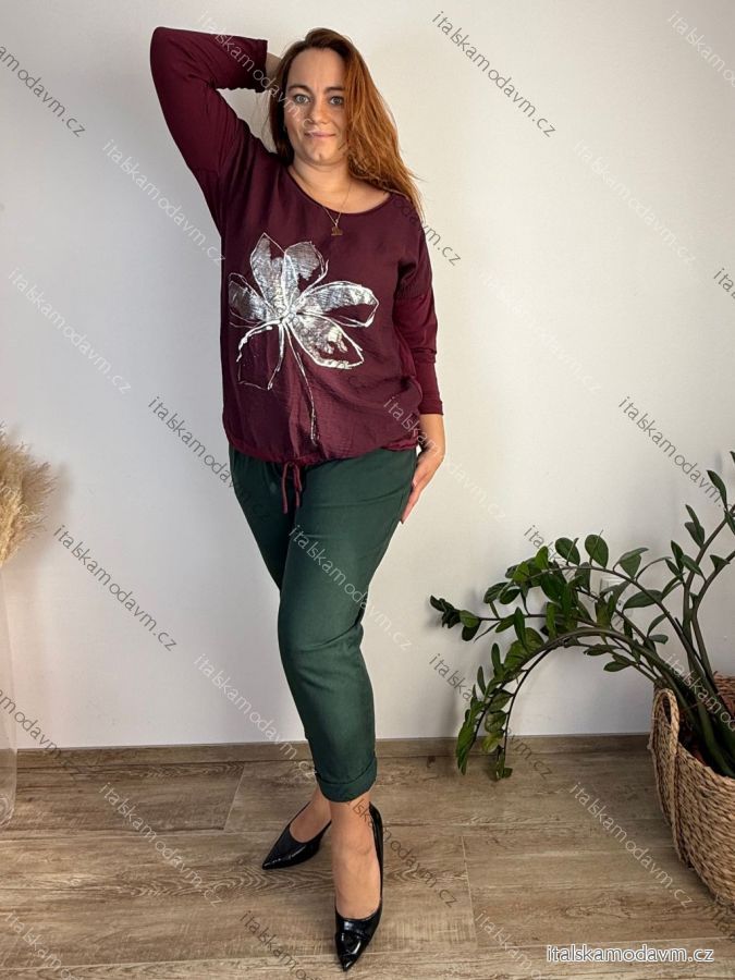 Tričko stahovací dlouhý rukáv dámské nadrozměr HANNA (48/50/52 ONE SIZE) ITALSKÁ MÓDA IM425665/DUR 48/50/52 vínová