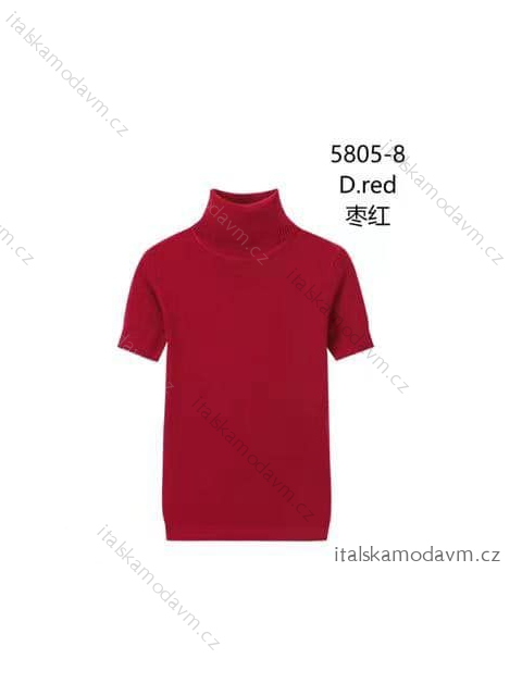 Tričko teplé s rolákom úpletové krátky rukáv dámske (S/M ONE SIZE) TALIANSKA MÓDA IMM22FD5805/DR - tmavo červená , S/M