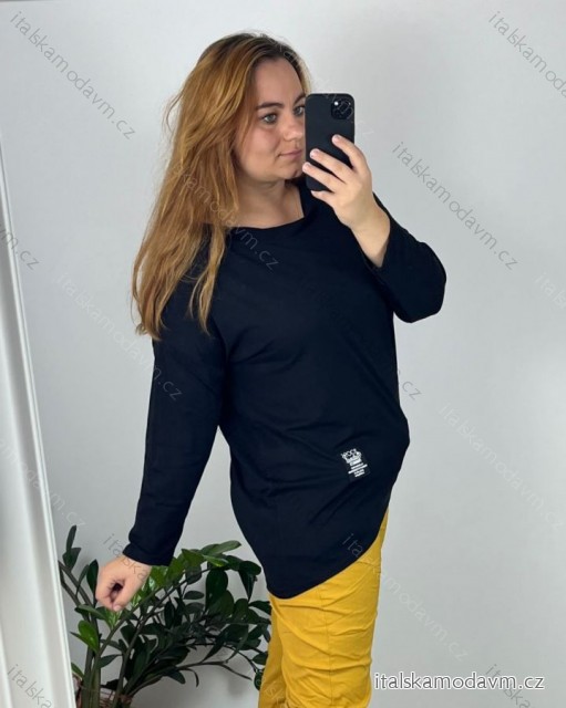 Tričko tunika dlhý rukáv dámska nadrozměr (50/52/54 ONE SIZE) TALIANSKÁ MÓDA IM724NANANA/DUR 52/54 čierna