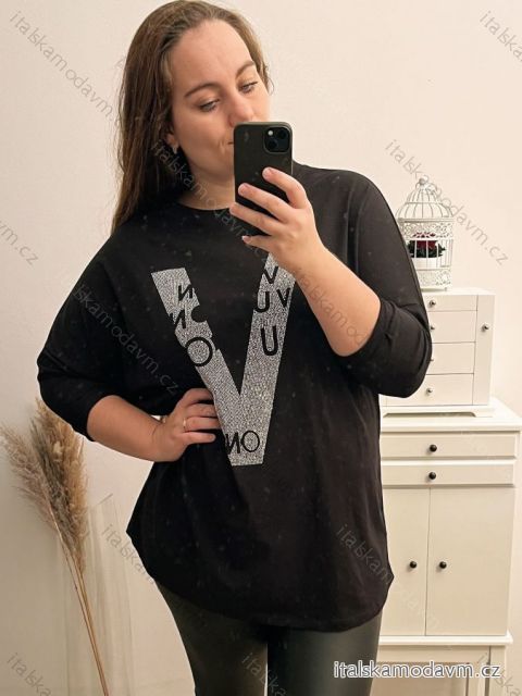 Tunika dlouhý rukáv dámská nadrozměr (XL/2XL/3XL ONE SIZE) ITALSKÁ MÓDA IMBM22550/DR 2XL/3XL bílá