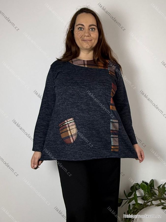 Tunika dlouhý rukáv dámská nadrozměr KARIN (XL-4XL) POLSKÁ MóDA PMWG23KARIN/DU 4XL tmavě modrá