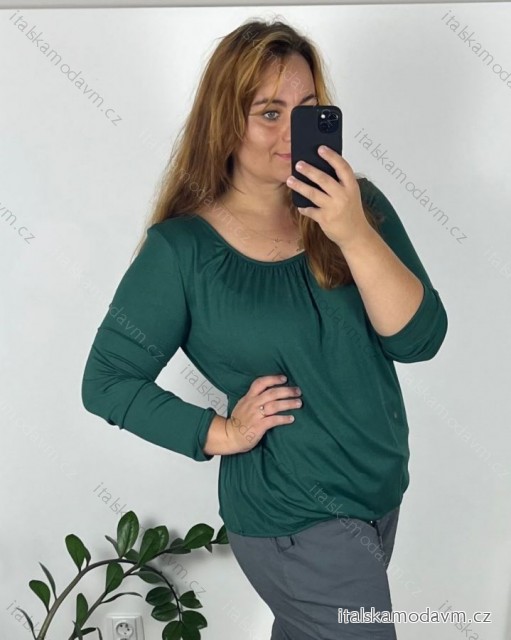 Tunika dlouhý rukáv dámské nadrozměr (52/54 ONE SIZE) ITALSKÁ MÓDA IM424525/DUR petrolejová 52/54
