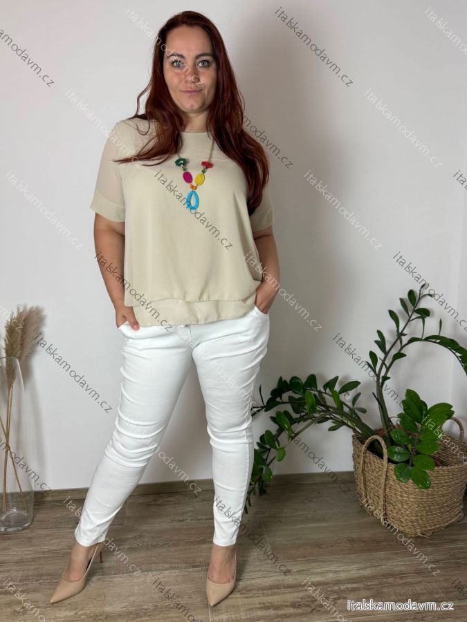 Tunika elegantní s přívěskem krátký rukáv dámská nadrozměr (46/48/50 ONE SIZE) ITALSKÁ MÓDA IMSM25MILANO/DU 48/50 béžová