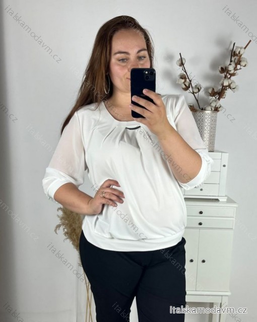 ZBOŽÍ (21607) > Oblečení dámské (17435) > Topy, trička, tuniky a tílka (2342) > Tunika halenka 3/4 rukáv nadrozměrná(L-4XL) POLSKÁ MÓDA PMF24JELA/DUR bílá 2XL