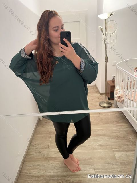 Tunika/halenka dlouhý rukáv dámská nadrozměr (3XL/4XL ONE SIZE) ITALSKÁ MÓDA IMWQ21223 zelená 3XL/4XL ONE SIZE