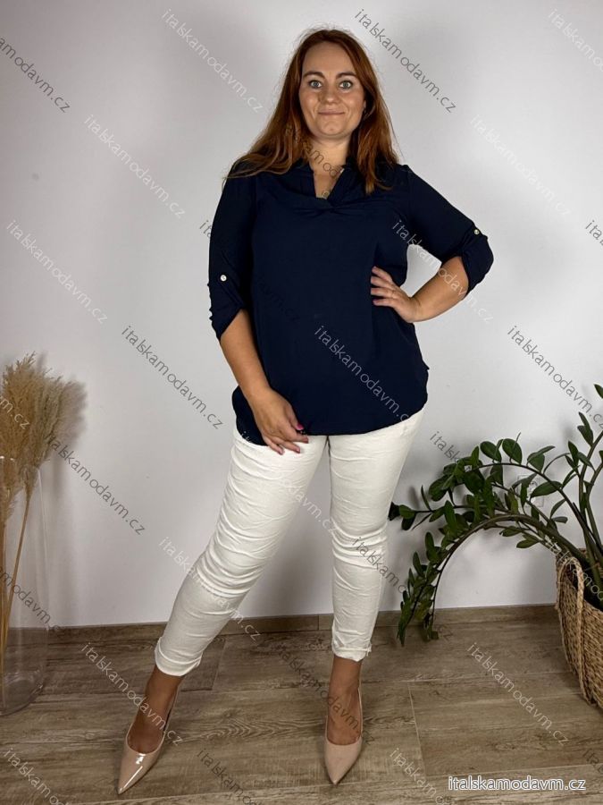 Tunika košilová dlouhý rukáv dámská nadrozměr (XL/2XL ONE SIZE) ITALSKÁ MÓDA IMD221065/DU tm. modrá