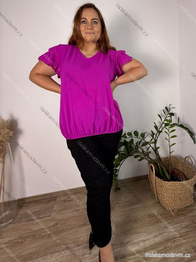 Tunika letní krátký rukáv dámská nadrozměr SYNDY (50/52/54 ONE SIZE) ITALSKÁ MÓDA IM425401/DUR 50/52/54 růžová fuchsiová