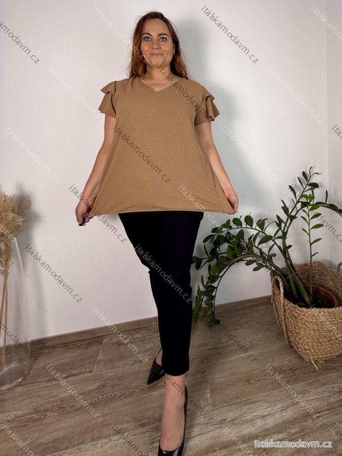 Tunika letní krátký rukáv dámská nadrozměr SYNDY (50/52/54 ONE SIZE) ITALSKÁ MÓDA IM425401/DUR 50/52/54 hnědá