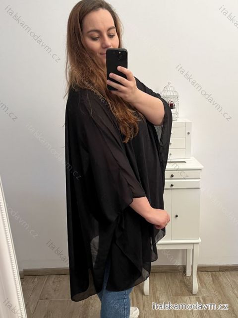 Tunika oversize krátký rukáv dámská nadrozměr (XL/2XL/3XL/4XL ONE SIZE) ITALSKÁ MÓDA IMBM23FATI/DU 2XL/3XL Černá