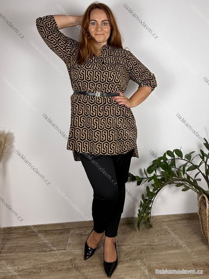 Tunika prodloužená s páskem dlouhý rukáv dámská nadrozměr DANA (48/50/52 ONE SIZE) ITALSKÁ MÓDA IM425566/DU 48/50/52 hnědá