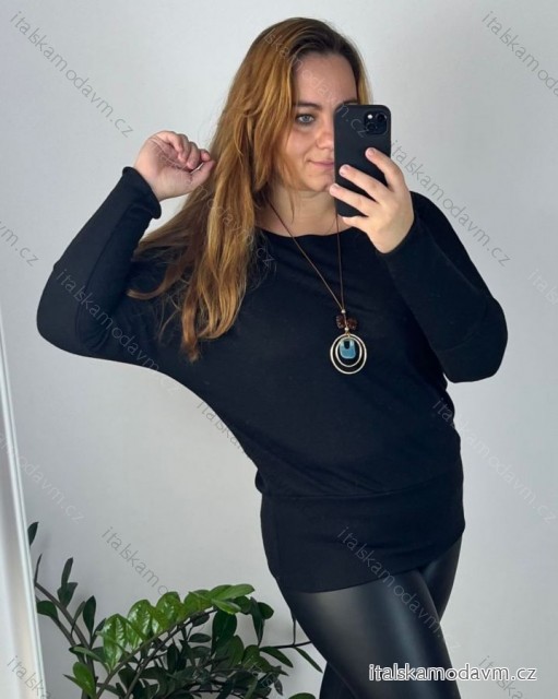 Tunika s přívěskem dlouhý rukáv dámská nadrozměr (48/50 ONE SIZE) ITALSKÁ MÓDA IM424NEKLES/DUR černá 48/50