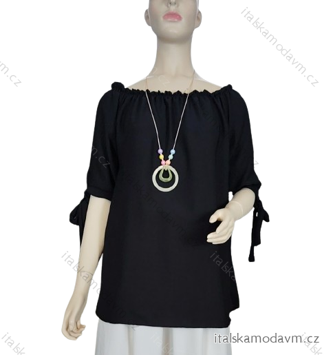 ZBOŽÍ (22821) > Oblečení dámské (18170) > Topy, trička, tuniky a tílka (2457) > Tuniky (832) > Tuniky krátký rukáv (348) > Tunika s přívěškem krátký rukáv dámská (L/XL ONE SIZE) ITALSKÁ MÓDA IMWDI24009/DUR - Černá - L/XL