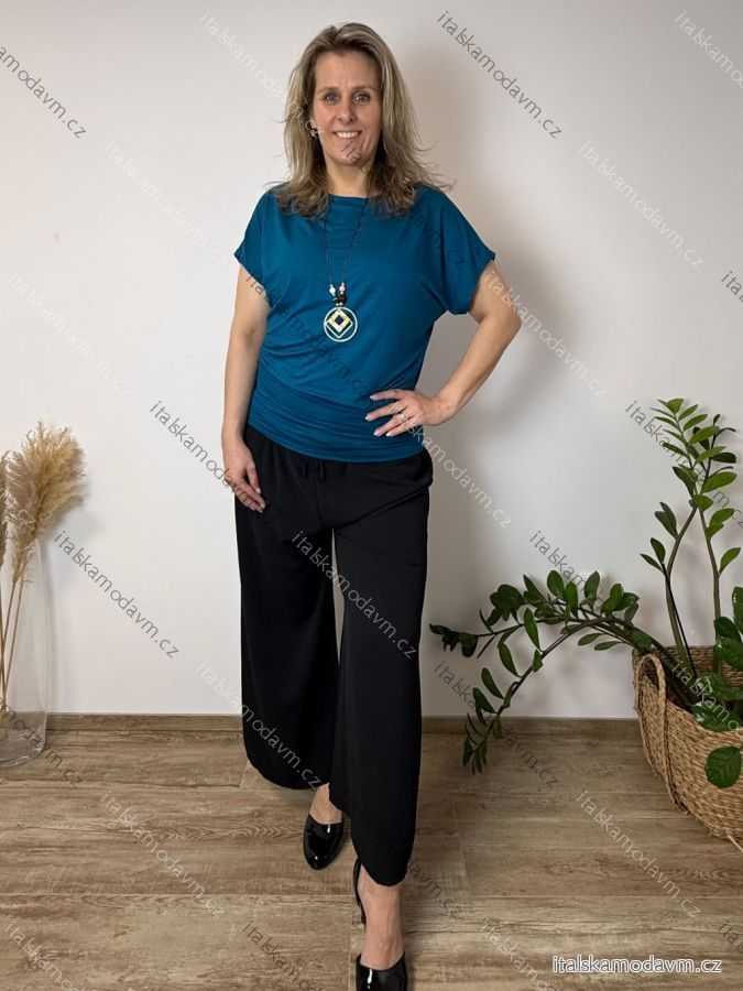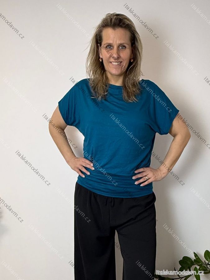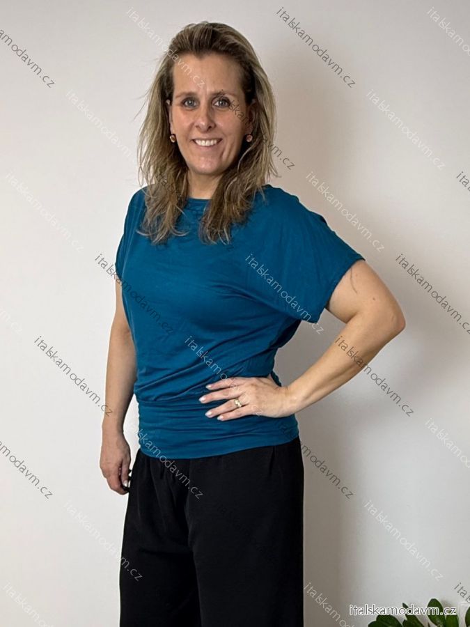 Tunika s príveskom krátky rukáv dámske nadrozmer VIVIEN (40/42/44 ONE SIZE) TALIANSKA MÓDA IM426022/DU modrá petrolejová