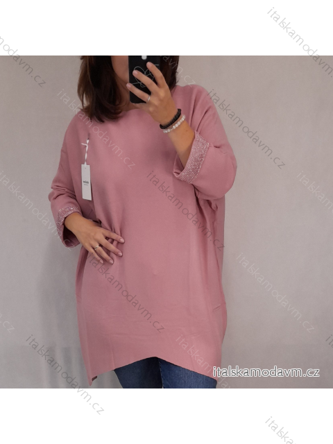 Tunika teplá dlhý rukáv dámska nadrozměr (3XL-6XL) EBELIEVE MA121S-2027/DU růžová 5XL/6XL