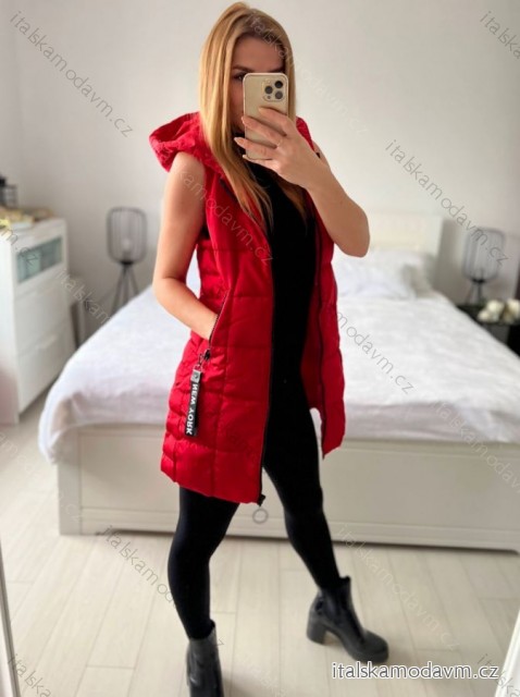 Vesta jarná tenká s kapucňou dámska (S-2XL) TALIANSKA MÓDA PMWB23B218135-C/DUR - červená - S