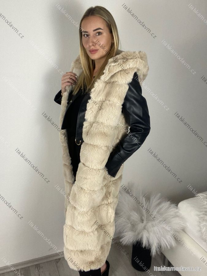 ZBOŽÍ (21962) > Vesta kožíšek s kapucí dámská (S/M-L/XL ONE SIZE) ITALSKÁ MÓDA ORC262198-1/DUR L/XL béžová