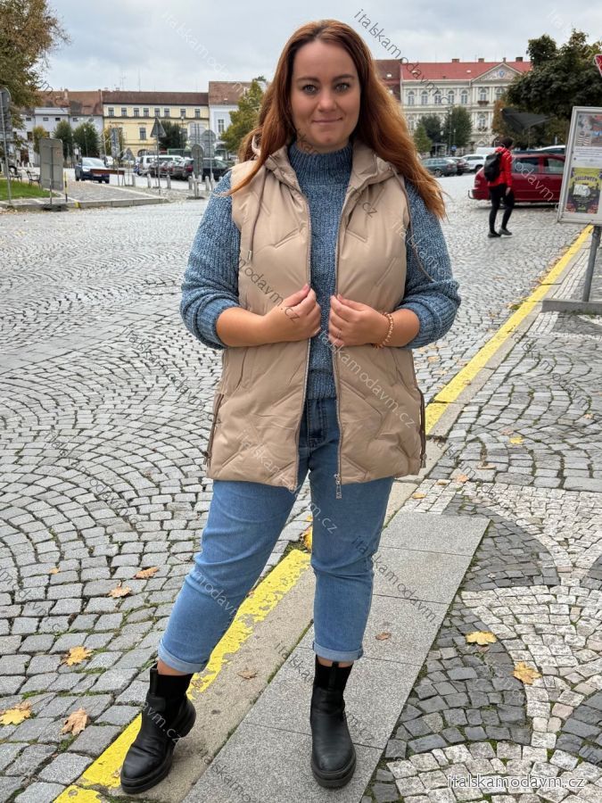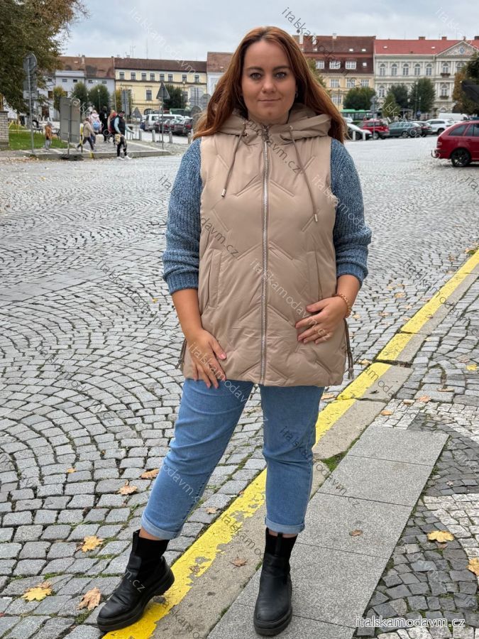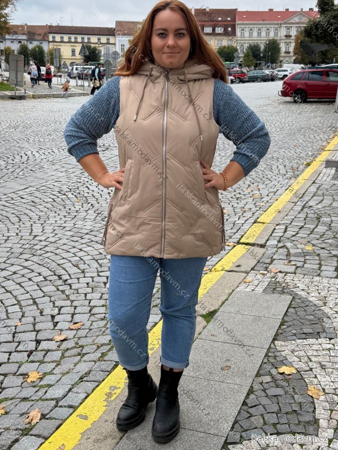 Vesta podzimní s kapucí na zip bez rukávu dámská nadrozměr (3XL - 7XL) SWEST IMWSW25C208382/DR 7XL béžová